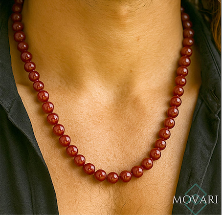 Second purchase of this bracelet from Sky and Movari Jewelry. Absolutely exceeds expectations! Pictures do not do these bracelets justice. Deep red color is beautiful. I actually ordered a size larger than needed, asked Sky to create a bracelet at correct size and include "extra" beads as loose items with order (to use separately). Sky gladly obliged. Will definitely be back to purchase the matching necklace. Sky is a joy to work with and her customer service is worth more than 5 stars for sure.